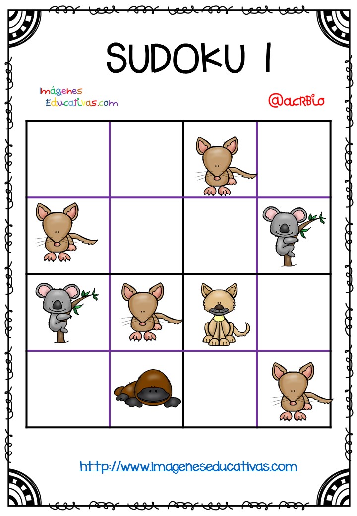 - NIVELL MOLT FÀCIL (ANIMALS): https://i2.wp.com/www.imageneseducativas.com/wp-content/uploads/2016/04/SUDOKU-4x4-2.jpg?ssl=1